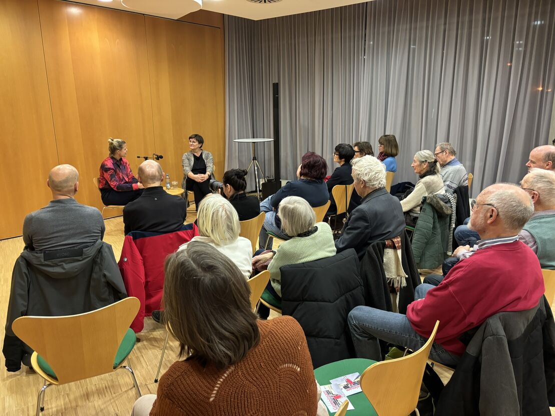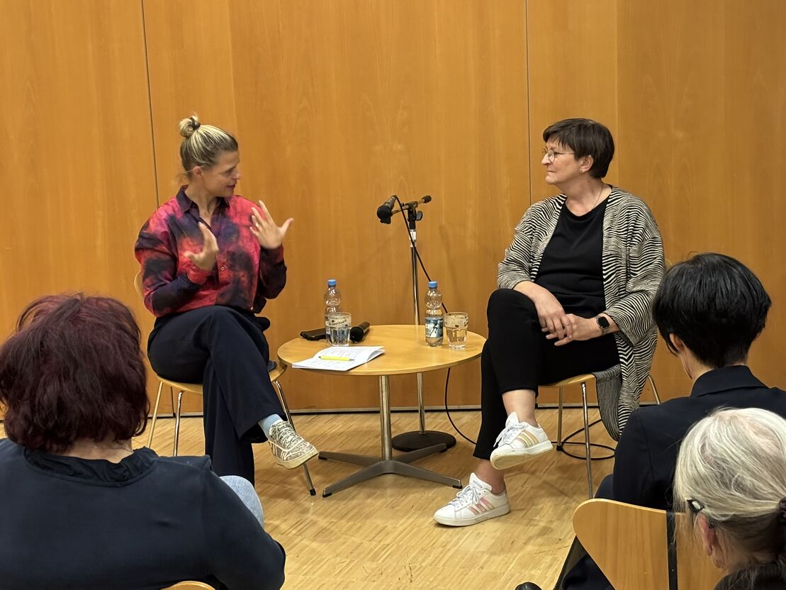 Bei der Veranstaltung „Frauen. Führung. Zukunft.“ sprach die Bundestagsabgeordnete Saskia Esken mit der Stadträtin Sara Dahme über ihre politischen Erfahrungen und darüber, was sich ändern muss, damit mehr Frauen Verantwortung in der Politik übernehmen können.